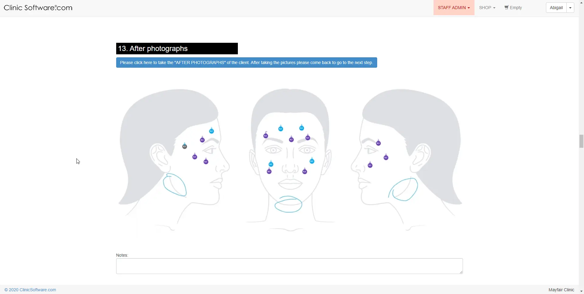 Môžete tiež kresliť vrásky a linky na tvári a tele a zaznamenávať ich polohu a sledovať ich vývoj.